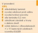 odstínů a dekorů v CPL viz vzorník EGGER (cca 70 barev a dekorů).