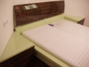 Dvoulůžko bez úložného prostoru v lakovaném provedení barva pistáciová. Dýhované čelo postele exotickou